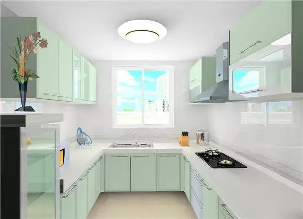 優點:水槽設置在U型中間,符合人體工程學,在做飯的時候炒菜、切菜及常見工具都可以放在左右兩側,非常方便。
