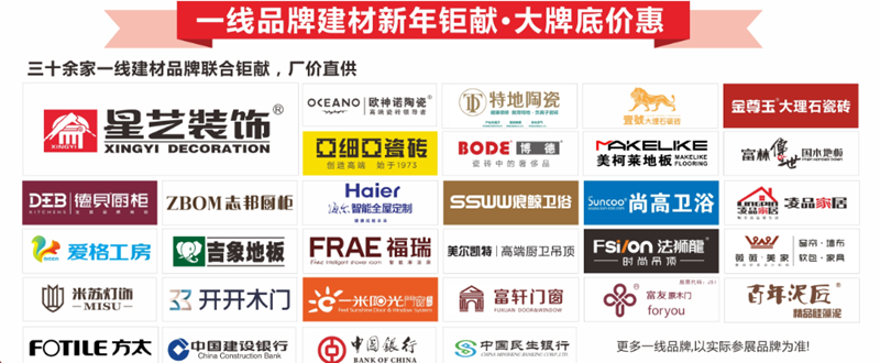 建材有禮:本次展會匯聚二十余家品牌建材參與,現場開市主材底價大特賣,讓您真正體會到的實惠。