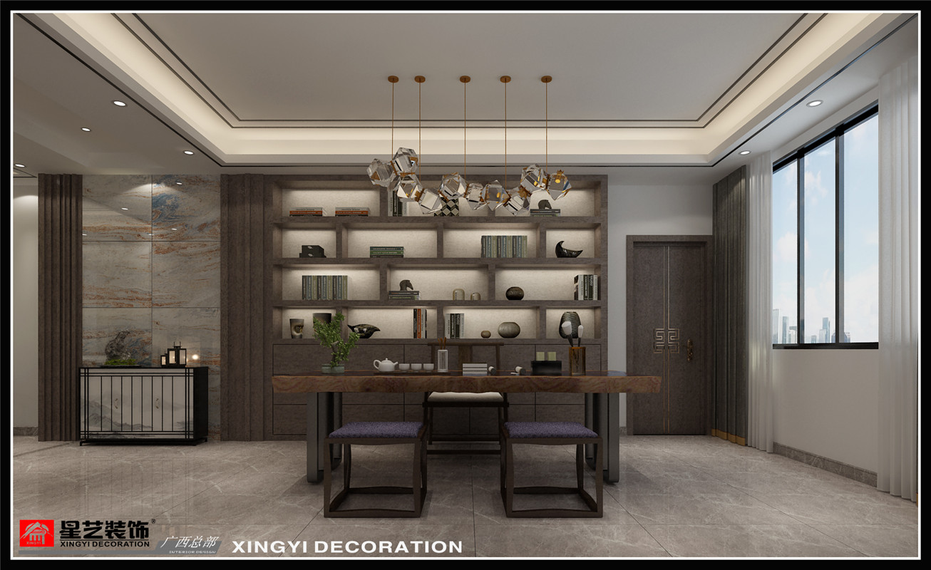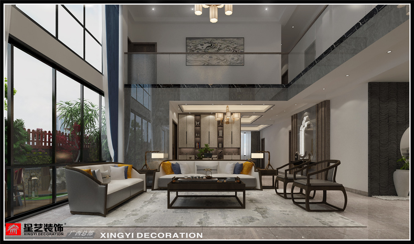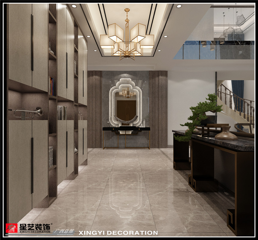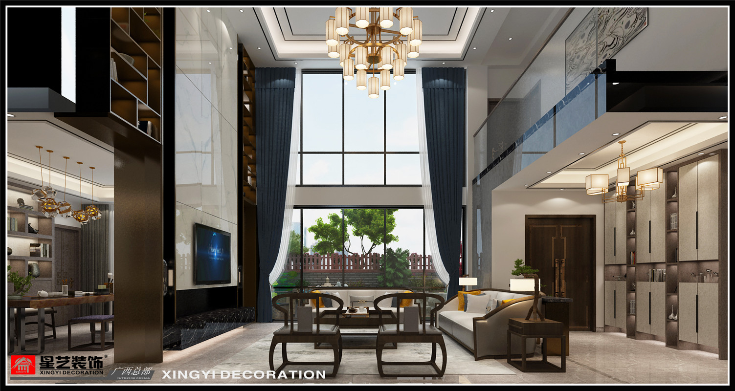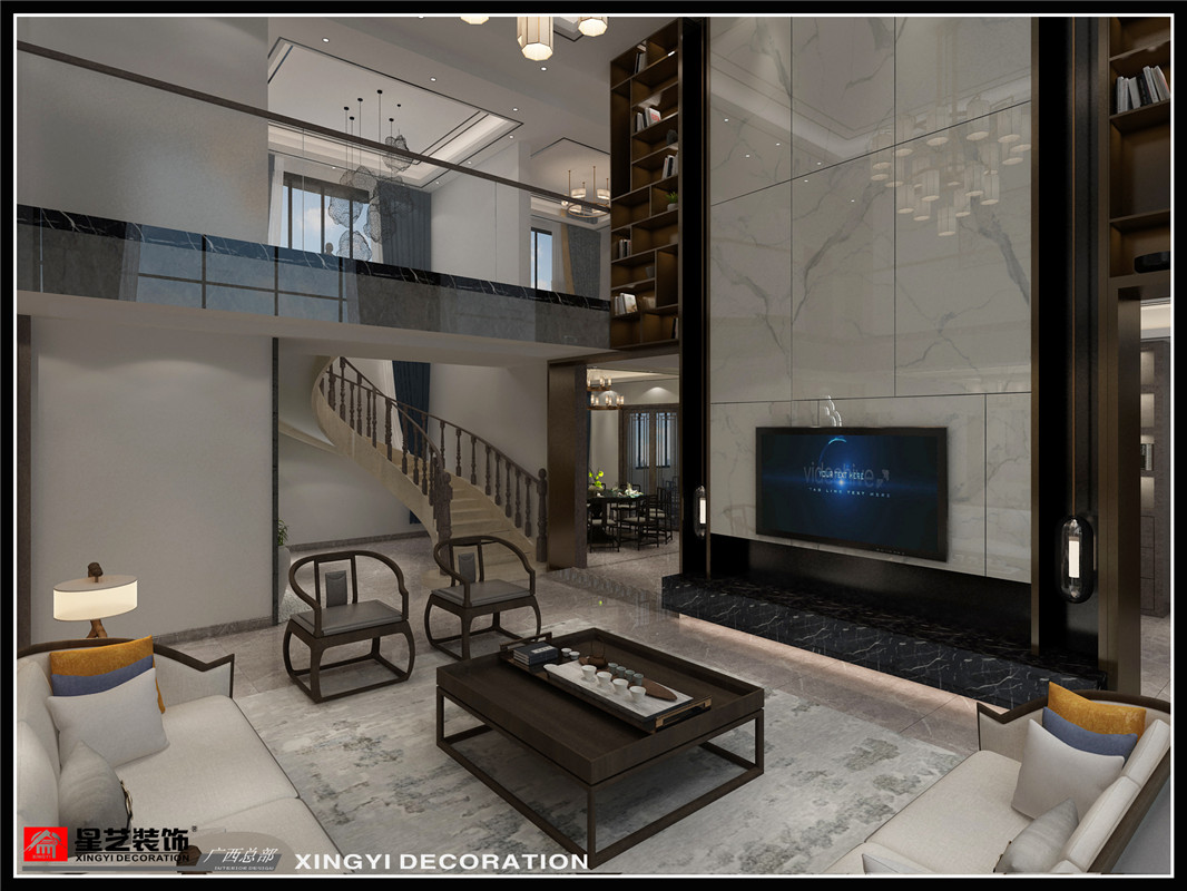明秀西路復(fù)式樓400平裝修案例【新中式】