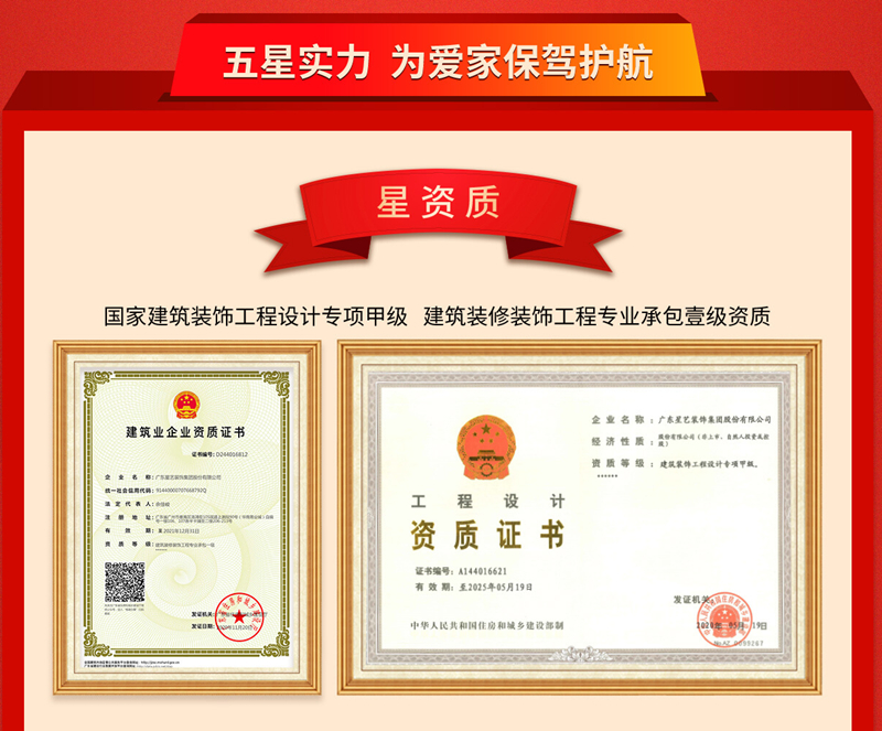 ◎ 廣東省知名商標 ◎ 國家建筑裝飾工程設計專項甲級 ◎ 建筑裝修裝飾工程專業承包壹級