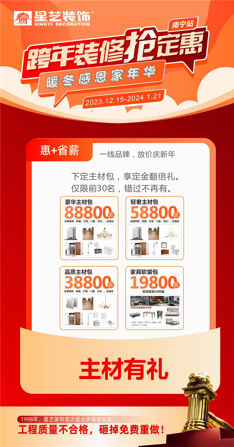 全國400+門店聯動,暖冬九大豪禮鉅惠全國,跨年裝修選星藝!