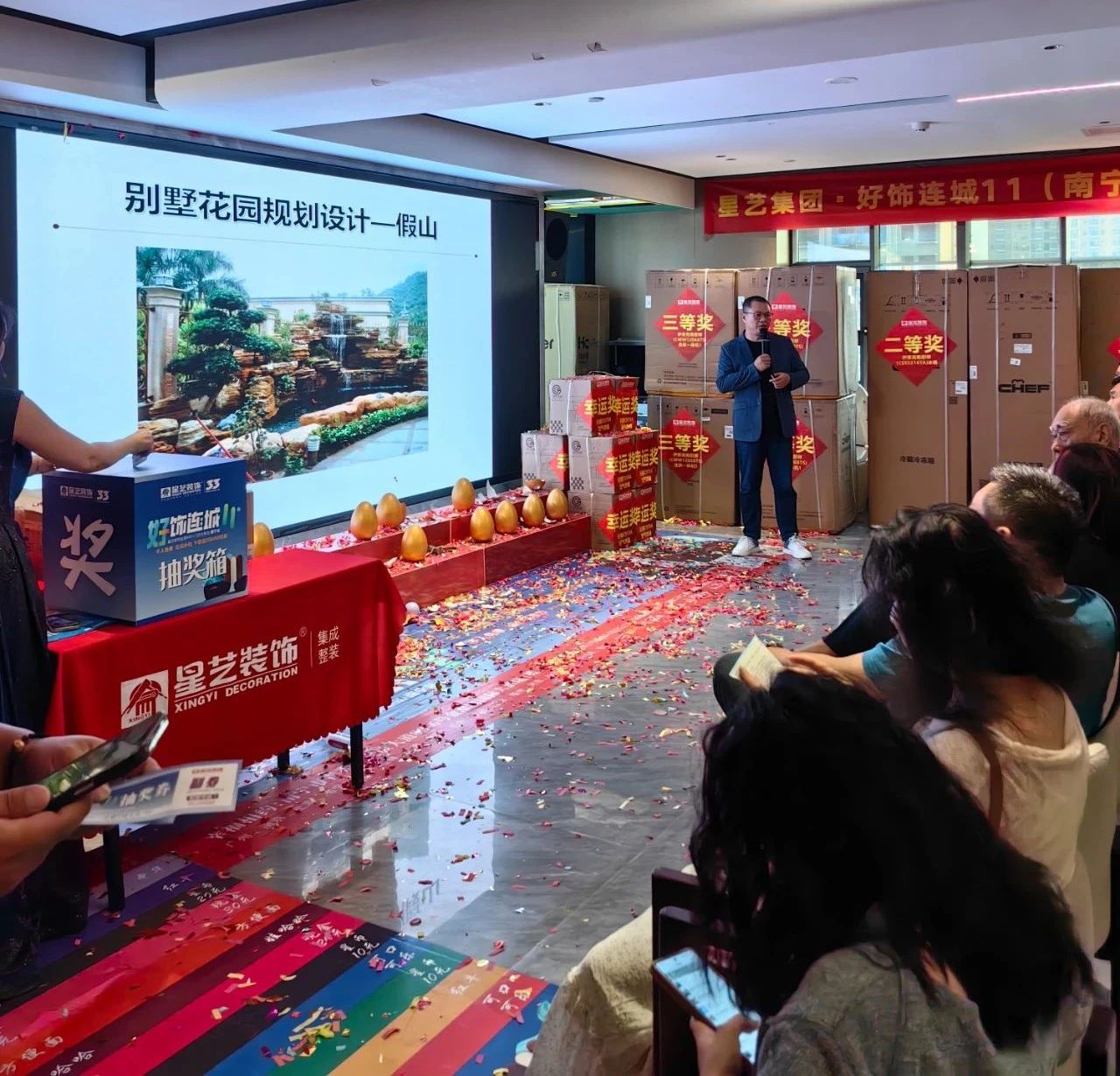 11月10日,星藝裝飾“好飾連?城11(南寧站)”在南寧金水灣國際大酒店12樓星藝裝飾集成整裝館圓滿收官,歷經一個多月的奮斗,此次活動獲得508戶家庭的選擇,創好飾連城活動南寧簽單新高度,再次彰顯星藝品牌口碑魅力;在氛圍火熱的活動落地現場,星藝裝飾為答謝新老客戶的支持,也如數兌現豪禮承諾,讓客戶滿載而歸。