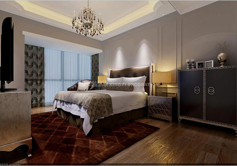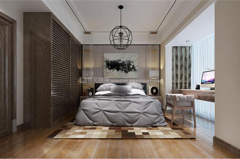 主臥墻面咖啡灰的選色,使整個空間顯得格外的寧靜,舒適中帶著高貴的氣質(zhì),床頭背景的石膏線框,與客餐廳的設(shè)計遙相呼應(yīng),整個空間也不會顯得過于單調(diào)。