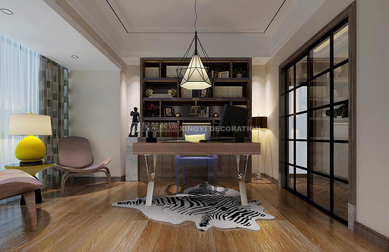 獨立的書房簡潔大方,沒有過多的裝飾,玻璃推拉門的設(shè)計不僅使書房空間顯得更大氣,也讓過道空間不過于單調(diào),并且增強了采光通風效果。