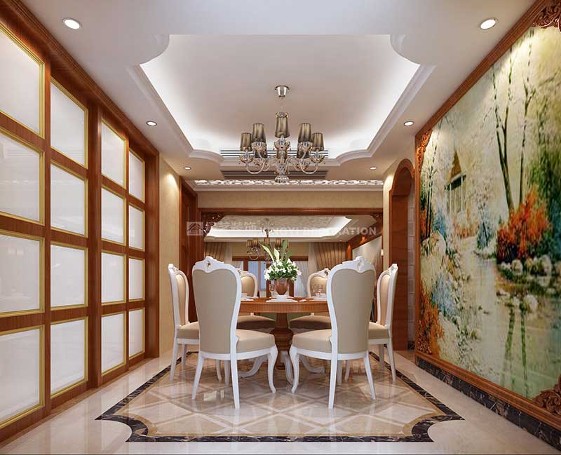 “沉醉奢華”是典型的古典歐式風格,這種風格的特點是典雅華貴,具有濃厚的文化氣息。在造型上,以歐式線條勾勒出不同的裝飾造型,氣勢恢宏、典雅大氣。在色彩上,運用深色木等古典常用色來渲染空間氛圍,營造出富麗堂皇的效果。在材質上,采用仿古地磚、歐式壁紙、大理石等,強調了穩重、華貴與舒適。氣質沉穩高貴,細節雕刻精美,洋溢著古典的穩重華麗。在配飾上,以華麗、明亮的色彩,配以精美的造型達到雍容華貴的裝飾效果。局部點綴綠植鮮花,營造出自然舒適的氛圍。