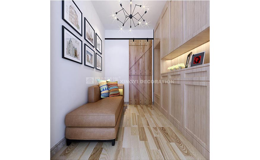 整個設計的色調以淺色系為主,材質選取方面也采用了眾多的自然元素,如仿古磚、實木、皮紋、柔軟質樸的棉麻布品等等;另外通過軟裝方面加入一些金屬類材質,使的得極致的淺色空間中又有工業風的復古。溫馨色調與復古黑的相遇、自然與不羈的碰撞,使得空間更具靈性,也使得此空間更貼近主人的情懷,讓整個空間充滿生命力。