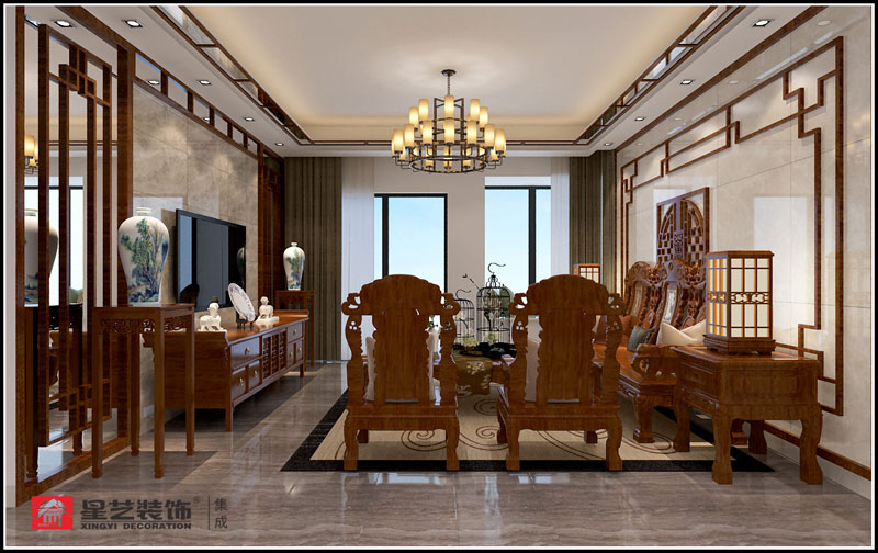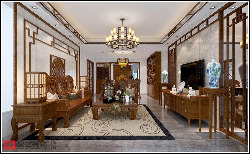本案定位古典中式,業主很喜歡實木家具,大量使用實木線條修飾收口,使整個空間對稱,簡約,樸素,格調雅致,文化內涵豐富,體現主人較高的審美情趣。