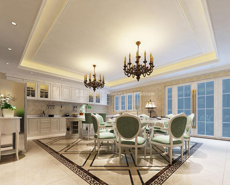 同時,歐式裝飾風格最適用于本套大面積房子,若空間太小,不但無法展現其風格勢氣,反而對生活在其間的人造成一種壓迫感。歐式風格很講究造型門的造型設計,包括房間的門和各種柜門,既要突出凹凸感,又要有優美的弧線,兩種造型相映感趣,風情萬種。當然,還要具有一定的美學素養,才能善用歐式風格,否則只會弄巧成拙。墻面用優質墻紙,地面材料以石材和地板為主。歐式客廳用家具和軟裝飾來營造整體效果以襯托豪華效果。布藝沙發組合有著絲絨的質感以及流暢的木質曲線,將傳統歐式家居的奢華與現代家居的實用性完美地結合。壁燈自然不可或缺,它被安置在空間的交匯處,又與一大幅色彩鮮艷的油畫相呼應,給敞開式的客廳提供了一個新的亮點。大面積的玻璃窗帶來了良好的采光,落地的窗簾很是氣派。在設計上追求空間變化的連續性和形體變化的層次感,室內多采用帶有圖案的壁紙、地毯、窗簾(簡約歐式風格窗簾的代表花型是大馬士革)、床罩、帳幔及古典裝飾畫,體現華麗的風格。