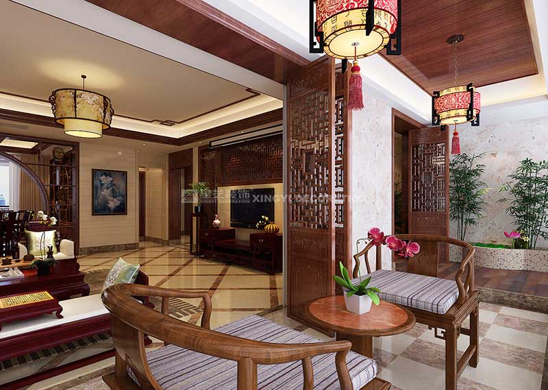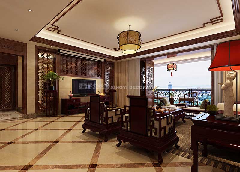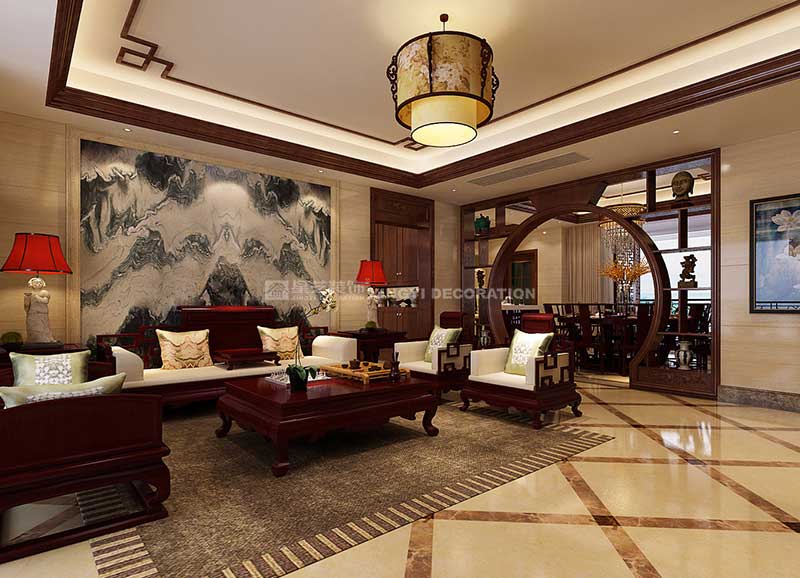 盛天東郡211平中式風格裝修案例設計說明
