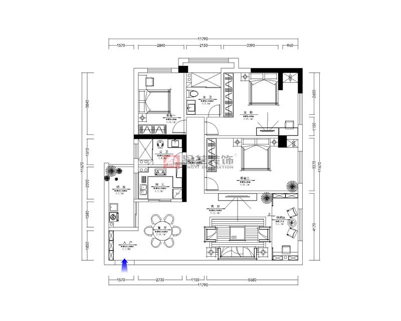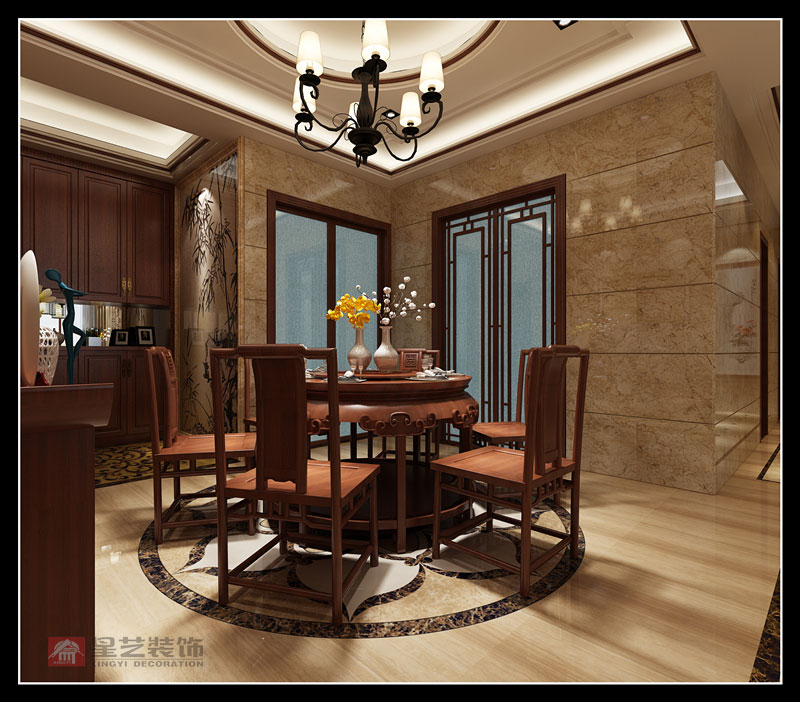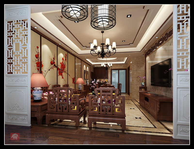 本案定位為現代中式風格。全案采用簡約的設計手法,將傳統文化融入到現代設計中,并使兩者有效的結合在一起,為居室主人呈現出“清雅含蓄”、“端莊豐華”的東方式精神境界。