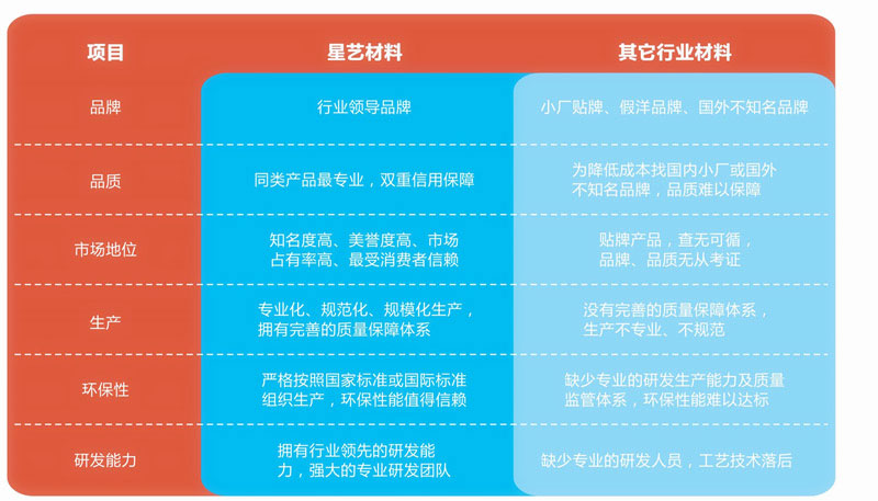 星藝品牌材料與行業其它材料優勢對比
