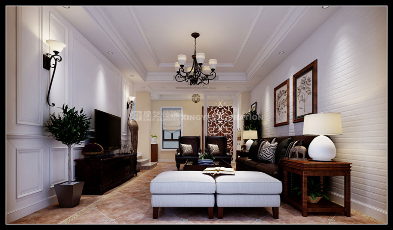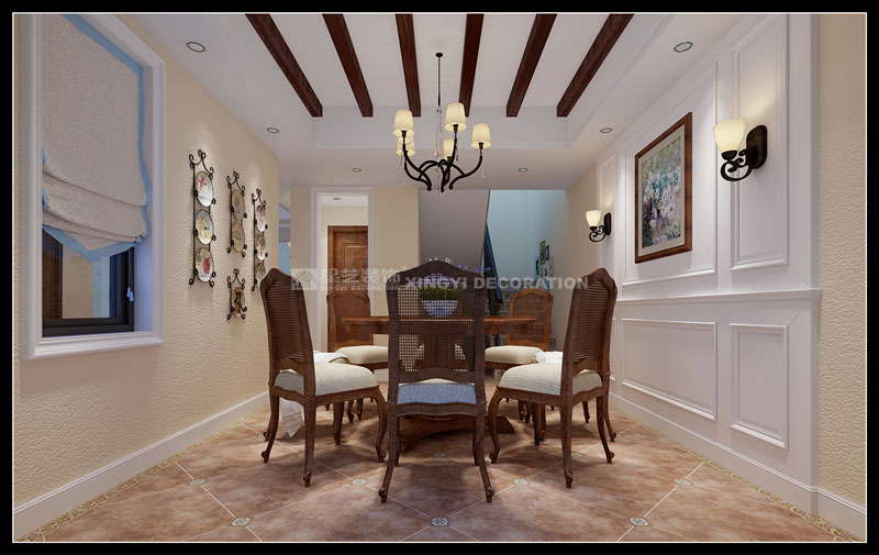 主材用料:仿古磚,拋釉磚,橡木地板,石膏線等