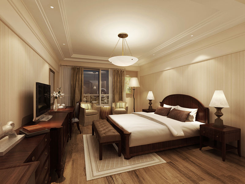(2)開關:雙控或雙回路控制吸頂燈(門邊和床頭),裝飾效果燈開關(如梳妝臺)
