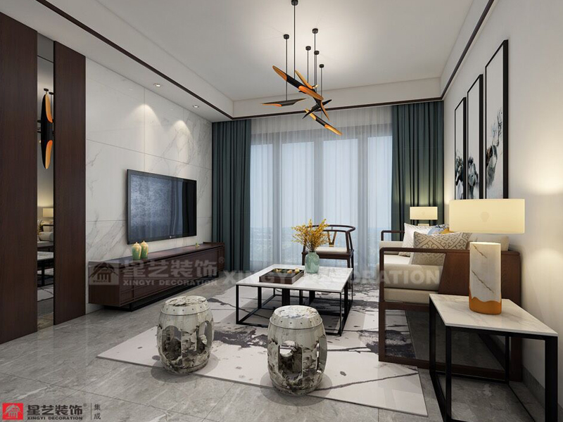 南寧星藝裝飾李發設計師專業設計的國悅九曲灣108平新中式裝修案例