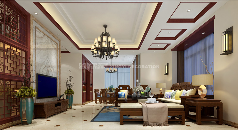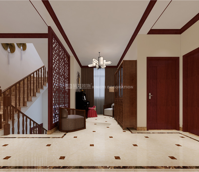 南寧星藝裝飾甘盧華設計師專業設計的350平別墅中式裝修案例
