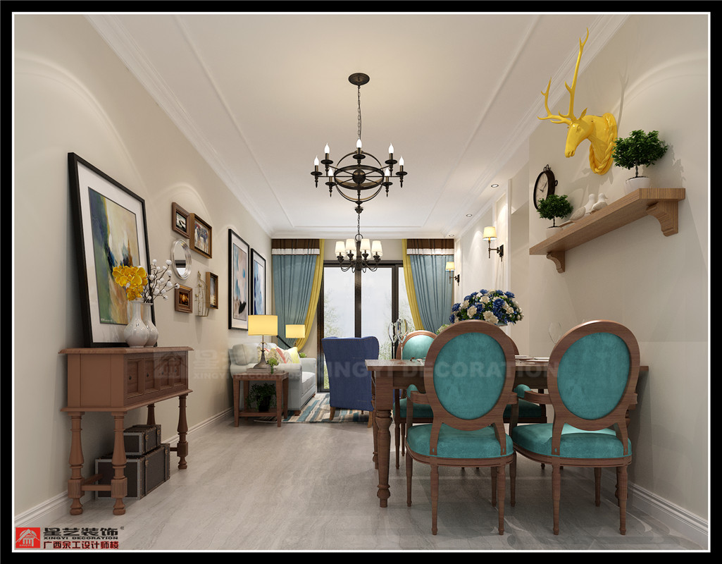 南寧星藝裝飾李忠華設計師專業設計的保利領秀前城108平美式風格裝修案例