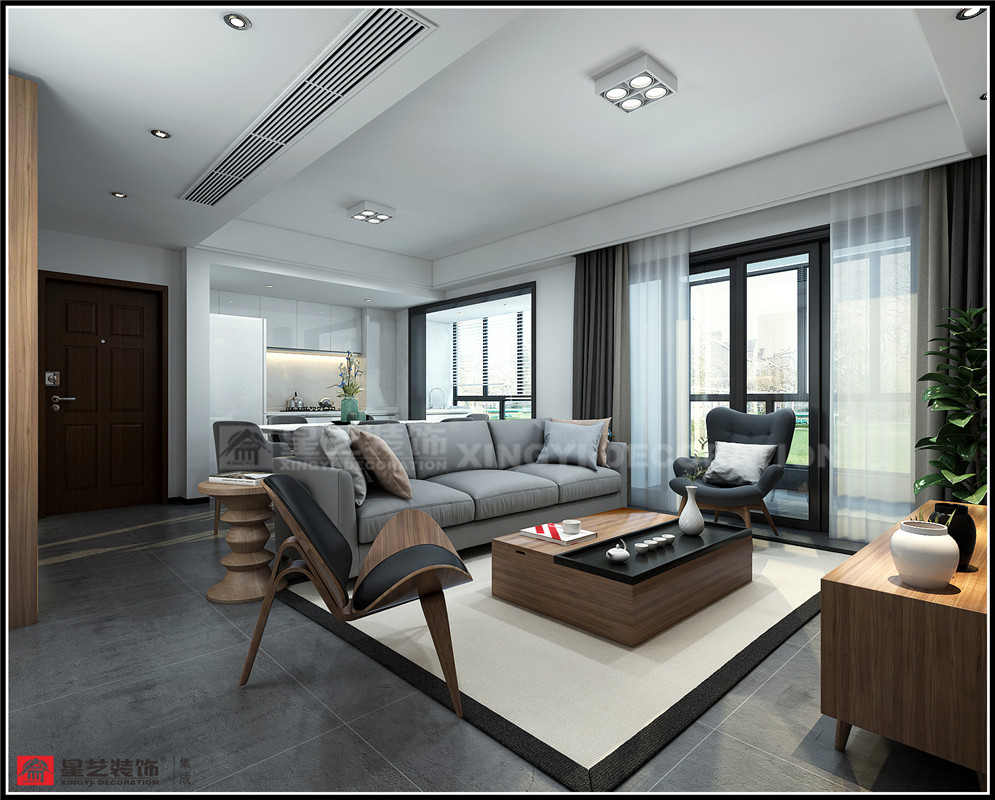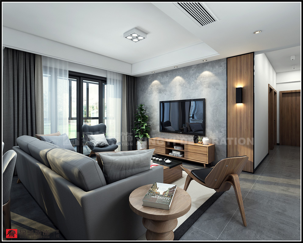 本方案為現代簡約風格,運用原始墻面水泥層,結合胡桃木色,體現了自然,舒適
