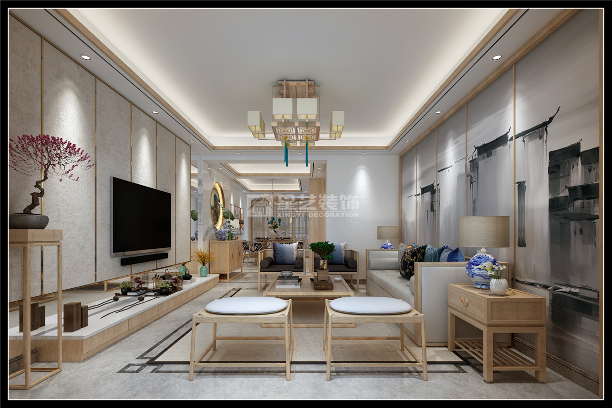 本案以原木色為基調,一改傳統中式紅木色的沉重壓抑感,使整個空間感覺更加富有禪味,厚而不重,有格調又不顯壓抑。