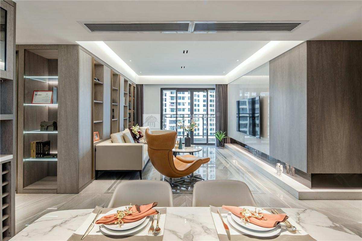 溫情,在頂面設(shè)計不同的氛圍燈,在夜幕降臨的時刻,它發(fā)出非常柔和的燈,照射在木質(zhì)的材料,整個空間的色溫就會變得更加溫暖,拿起高腳杯,躺在皮質(zhì)的沙發(fā)上,搖一搖,輕聞,抿一小口。