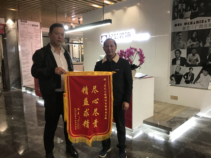 冬日暖陽(yáng),情誼深長(zhǎng)。近日,北投領(lǐng)上業(yè)主親臨南寧星藝裝飾廣西總部店,將一面承載著滿滿感激與認(rèn)可的錦旗贈(zèng)予公司,錦旗上“精心...