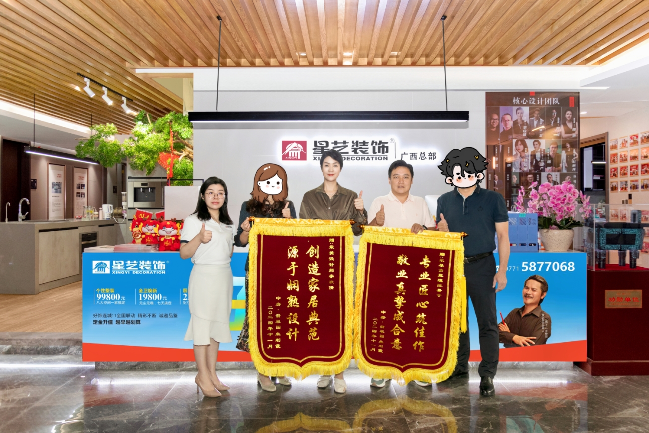 金秋九月,譽滿而來。2025年9月初,南寧星藝裝飾集成整裝館再度喜迎溫馨一幕——地礦大院單位房業主親臨展廳,將一幅繡有“貼心服...