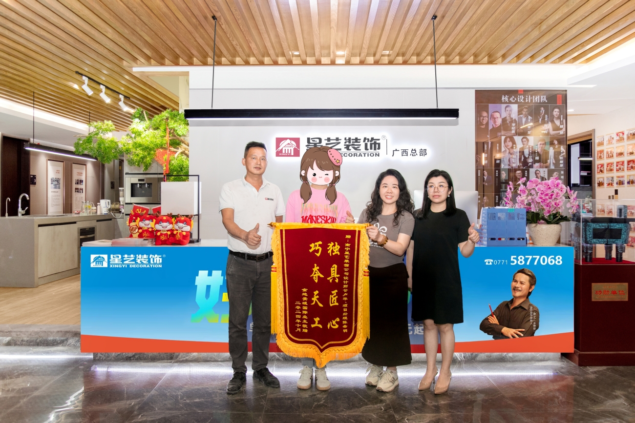 金秋九月,譽滿而來。2025年9月初,南寧星藝裝飾集成整裝館再度喜迎溫馨一幕——地礦大院單位房業主親臨展廳,將一幅繡有“貼心服...