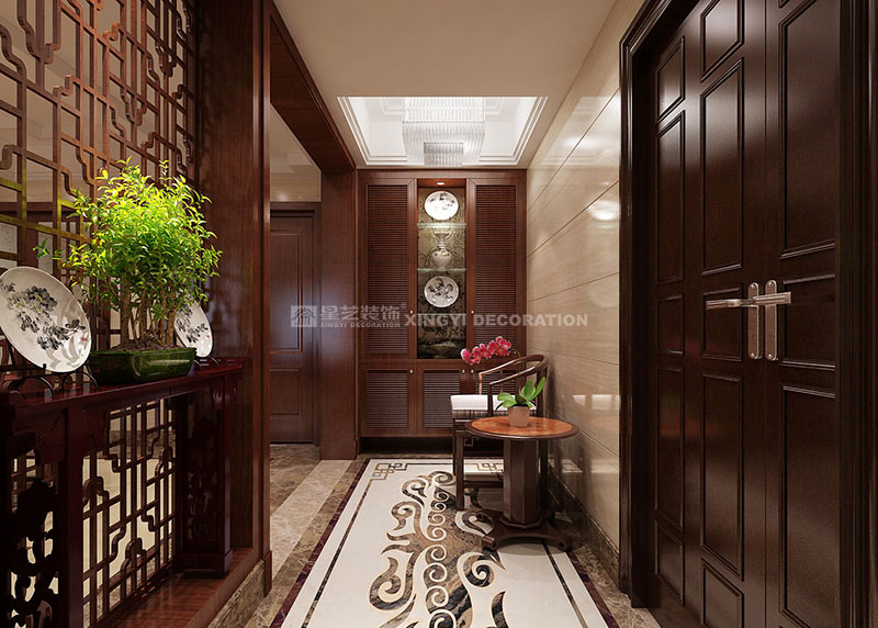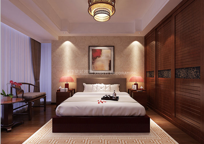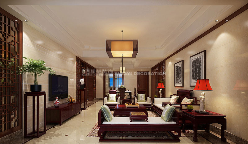 居室:居室在色彩方面秉承了傳統古典風格的典雅和華貴,但與之不同的是加入了很多現代元素,呈現著時尚的特征。在配飾的選擇方面更為簡潔,少了許多奢華的裝飾,更加流暢地表達出傳統文化中的精髓。為了給居室增添幾分暖意,飾以精巧的燈具和雅致的掛畫,使整個居室在濃濃古韻中滲透了幾許現代氣息。