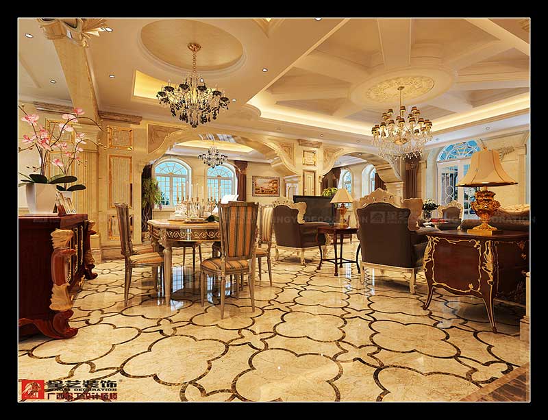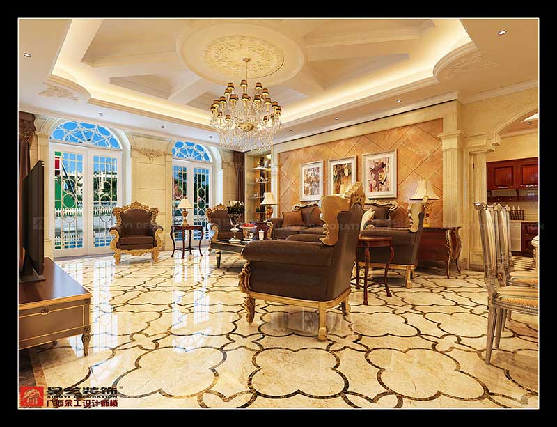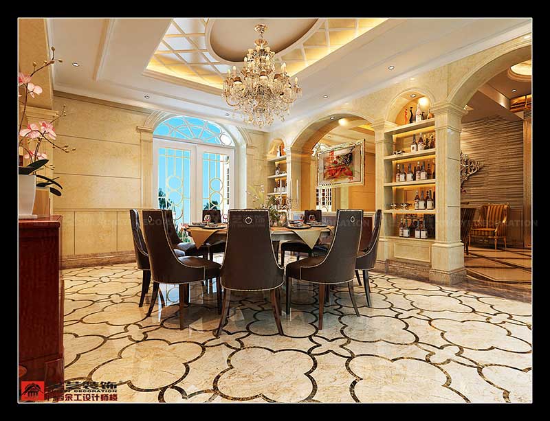 該案主要在創(chuàng)造一個(gè)現(xiàn)代奢華歐式主義的家居氛圍,從而來體現(xiàn)這種住宅形式的尊貴性和獨(dú)一無二性.在創(chuàng)意上,引入的是傳統(tǒng)的理念,但融入的卻是時(shí)尚與未來,這種設(shè)計(jì)理念立足于歐式浪漫的色調(diào),但又大膽利用了材質(zhì),燈光等元素的融會(huì)貫通,從而以古喻今,復(fù)古式的高貴華麗與最新時(shí)尚巧妙結(jié)合,強(qiáng)調(diào)了空間里的意境創(chuàng)造.在尊重原有建筑結(jié)構(gòu)功能的基礎(chǔ)上,對(duì)空間構(gòu)架結(jié)合創(chuàng)意元素進(jìn)行了深入理解,從而做到:去粗取精,去偽存真,強(qiáng)調(diào)空間與空間之間的遞進(jìn)關(guān)系,滿足了一個(gè)富貴之家的全面功能需求.