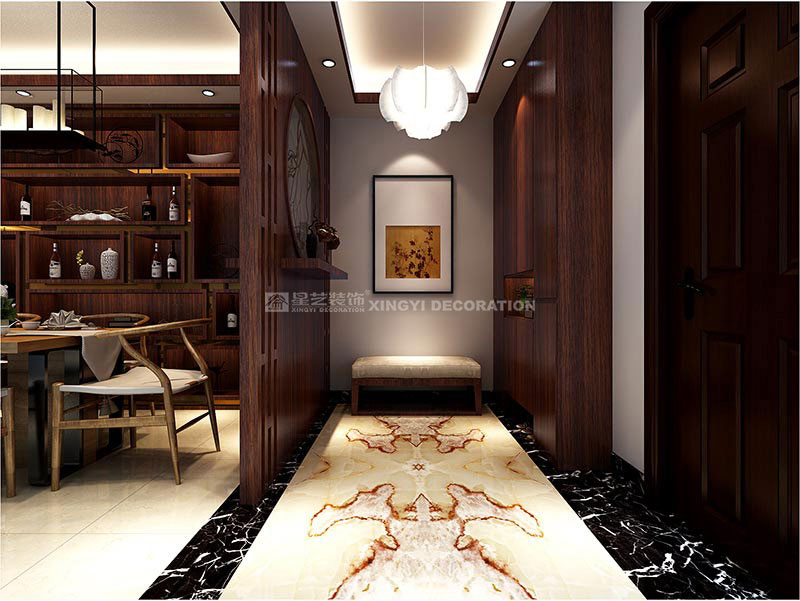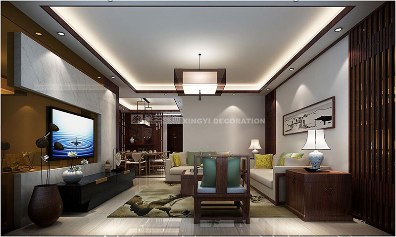 邕江御景160平裝修案例說明:設計不只是設計,唯有將設計與生活,人與空間完美結合,才能創造出兼具美學與功能,同時又能打動人心,使得心物相應的生活空間,本案為一居住空間,以新中式風格,為主題設計風格,以空間的主人的生活方式融合一體,舒適宜人,沉著內斂的空間里,包含了復雜的設計思考,在沉靜的空間里加入微動的節奏,讓業主結束一天繁忙的工作之后,回到家就能徹底放松身心,與家人共享愜意的時光。
