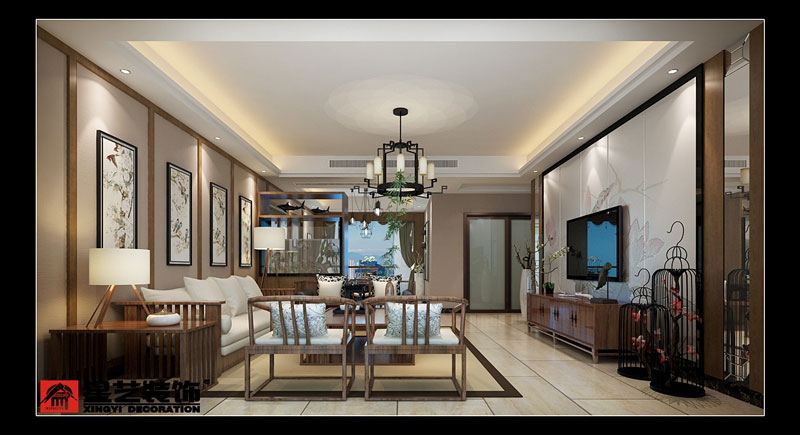 留白是中國畫最浪漫的表現手法之一,形不到而意盡顯。本設計定位為現代中式風格的格調,空間大面積的白色及淺色調,猶如寫意國畫中的水墨山水.,傳統木雕圖騰元素隱匿于白色之中,若隱若現,不失細節與精巧.....
