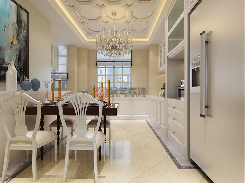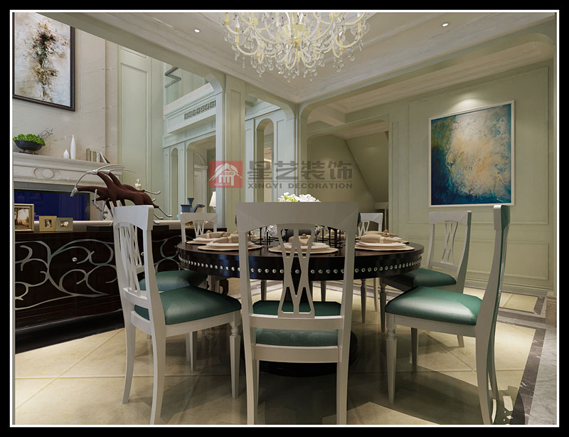 本案例的裝飾風(fēng)格是法式風(fēng)格。設(shè)計承襲法式建筑藝術(shù)和美學(xué)神韻,內(nèi)飾回歸法式宮廷中最正統(tǒng)的浪漫典雅,且對傳統(tǒng)重新做了新的嘗試與思考,化繁為簡,吐故納新,將法式風(fēng)格的端莊與簡約,與中國當下審美情趣合二為一,實現(xiàn)端莊與現(xiàn)代,傳統(tǒng)與創(chuàng)新的和諧之美。整個空間陳設(shè)注重氣質(zhì),留意精神世界。室內(nèi)一共三層,格局以中軸線對稱布局。客廳作為入戶第一空間,由造型優(yōu)美的法式廊道引導(dǎo)著你,完美的天花拱頂、特別訂制的水晶吊燈與現(xiàn)代感的優(yōu)雅家俱陳設(shè),線條簡潔的家具,氣質(zhì)凝練而彰顯氣度。屋頂花園的設(shè)計給繁忙的都市生活增添了一個悠然自得的空間,濃郁的綠植,法式風(fēng)格濃郁的露臺,將室內(nèi)與室外共同點綴在自然中,并不在乎占地面積大小,讓人感到有很大的活動空間。法式建筑往往不求簡單的協(xié)調(diào),而是崇尚沖突之美。在設(shè)計上講求心靈的自然回歸感,給人一種撲面而來的濃郁氣息。開放式的空間結(jié)構(gòu)、隨處可見的花卉和綠色植物、造型簡約的家具……所有的一切從整體上營造出一種悠然自得的生活態(tài)度。
