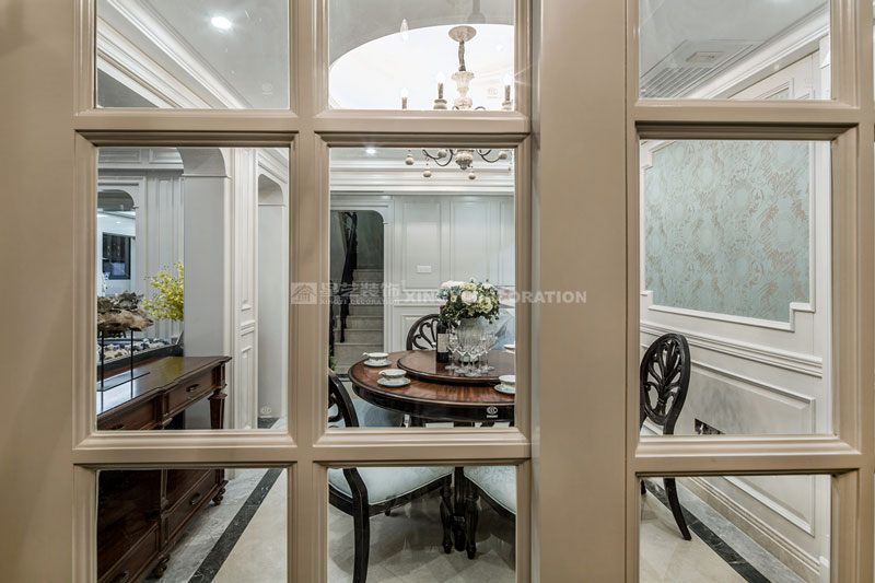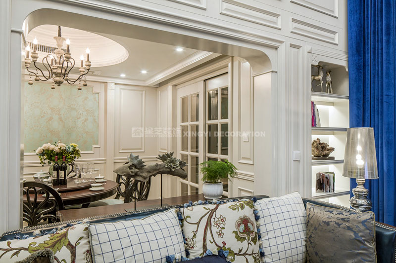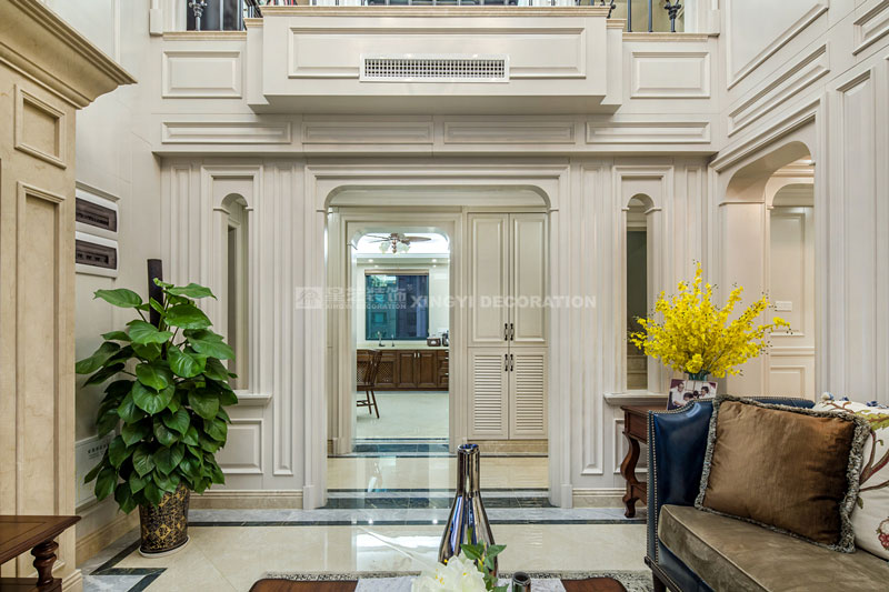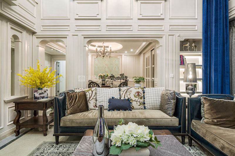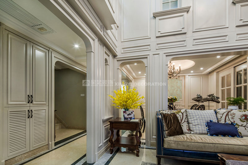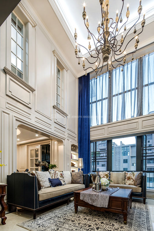 本案例的裝飾風(fēng)格是法式風(fēng)格。設(shè)計(jì)承襲法式建筑藝術(shù)和美學(xué)神韻,內(nèi)飾回歸法式宮廷中最正統(tǒng)的浪漫典雅,且對(duì)傳統(tǒng)重新做了新的嘗試與思考,化繁為簡(jiǎn),吐故納新,將法式風(fēng)格的端莊與簡(jiǎn)約,與中國(guó)當(dāng)下審美情趣合二為一,實(shí)現(xiàn)端莊與現(xiàn)代,傳統(tǒng)與創(chuàng)新的和諧之美。整個(gè)空間陳設(shè)注重氣質(zhì),留意精神世界。室內(nèi)一共三層,格局以中軸線對(duì)稱布局。客廳作為入戶第一空間,由造型優(yōu)美的法式廊道引導(dǎo)著你,完美的天花拱頂、特別訂制的水晶吊燈與現(xiàn)代感的優(yōu)雅家俱陳設(shè),線條簡(jiǎn)潔的家具,氣質(zhì)凝練而彰顯氣度。屋頂花園的設(shè)計(jì)給繁忙的都市生活增添了一個(gè)悠然自得的空間,濃郁的綠植,法式風(fēng)格濃郁的露臺(tái),將室內(nèi)與室外共同點(diǎn)綴在自然中,并不在乎占地面積大小,讓人感到有很大的活動(dòng)空間。法式建筑往往不求簡(jiǎn)單的協(xié)調(diào),而是崇尚沖突之美。在設(shè)計(jì)上講求心靈的自然回歸感,給人一種撲面而來的濃郁氣息。開放式的空間結(jié)構(gòu)、隨處可見的花卉和綠色植物、造型簡(jiǎn)約的家具……所有的一切從整體上營(yíng)造出一種悠然自得的生活態(tài)度。