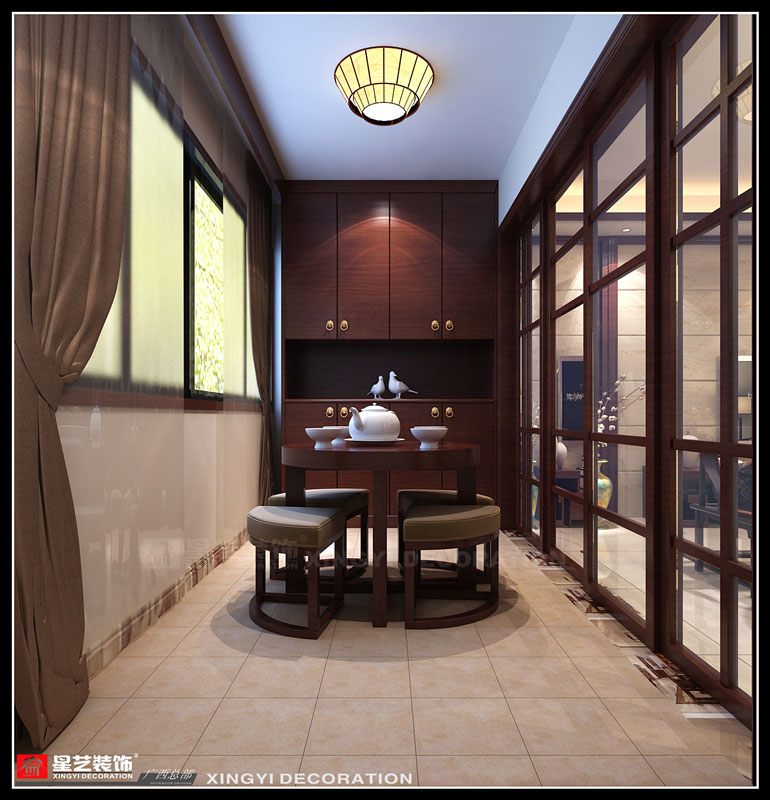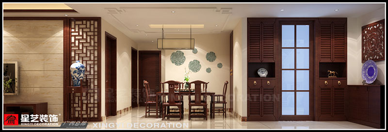 在做這個案例之前通過與業主顧小姐詳細了解了一下其家中的主要成員構成以及常住人口的情況,從顧小姐那得知這套房子是其為父母購置的養老房,顧小姐本人常年居住于國外,在和顧小姐的溝通過程中得知其父母比較喜歡新中式風格的裝修設計,大致的情況了解之后,首先知道了常住人口為兩人,常年只有兩個人居住的情況下,空間大了就會覺得冷清,所以我采用了以深木色結合暖色調的燈光為主,老人平時比較喜歡干凈整潔,所以對家中的儲物空間是比較在意的,所以設計師在設計過程中考慮了包括儲物柜,隱藏式的壁柜及可儲物式的榻榻米,這些儲物空間大大的滿足了老人的需求,家中常住人口比較少的話,最好運用暖色,這樣就不會覺得空間大而顯得冷清。